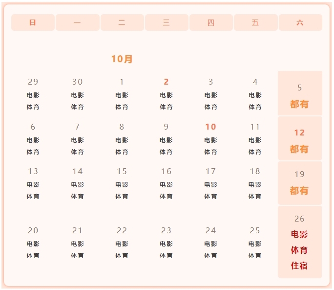 涵蓋餐飲、住宿、電影、體育