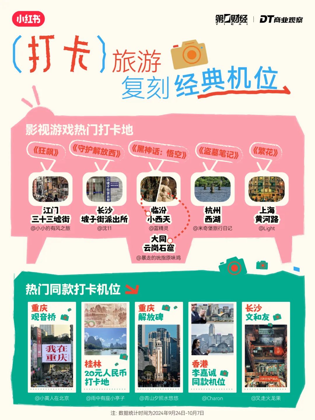 熱門影視游戲和小說將流量從線上帶到線下,明星甚至是普通人發(fā)掘的經(jīng)典機位,也是大家旅游時模仿的對象。