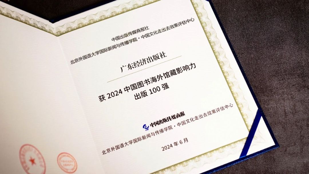 廣東經(jīng)濟出版社獲2024中國圖書海外館藏影響力出版100強榮譽證書