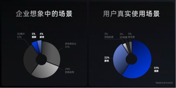 “大家都想將AR眼鏡變成下一代計算平臺,但91%的分體式AR眼鏡用戶主要使用AR眼鏡來做兩件事——觀影和游戲。”