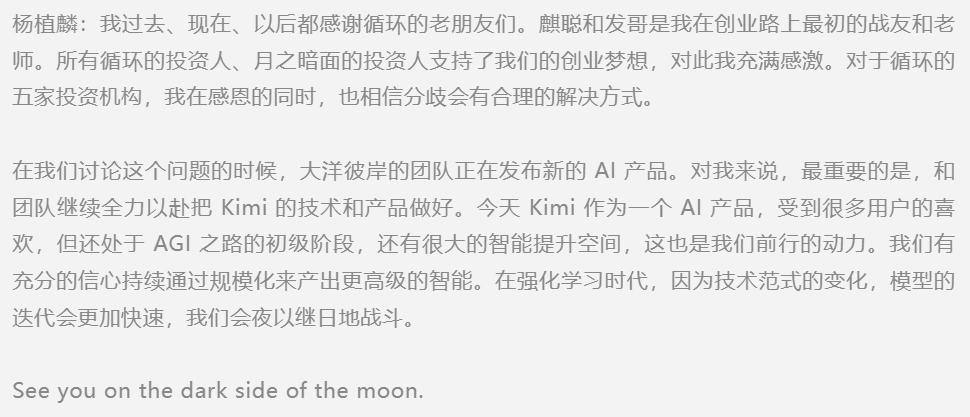 而楊植麟的回應(yīng),則讓人們得以一窺,一位年輕的AI領(lǐng)袖,如何在漩渦中心保持理性和定力,對短期的利益糾紛做出取舍,并帶領(lǐng)船隊駛出風(fēng)暴。