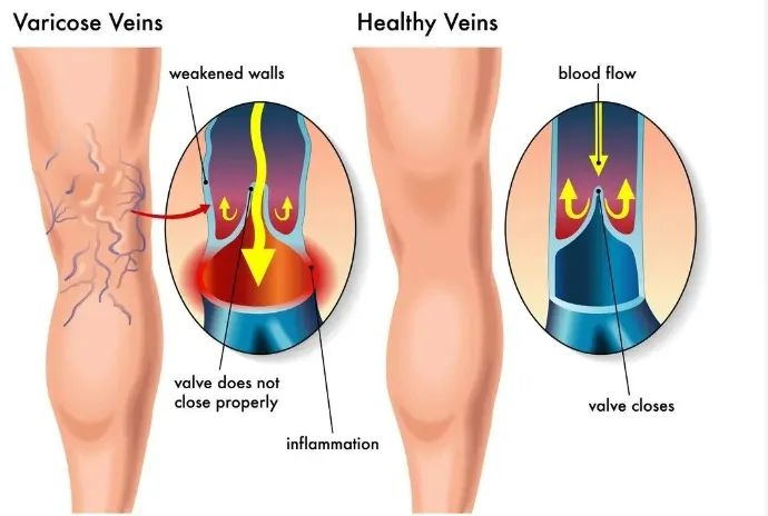 靜脈曲張是由靜脈瓣膜功能不全、靜脈血液回流不暢導(dǎo)致的血液淤積血管腫,常見于肢體前段,也就是足部和手部。