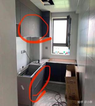 而且做的也比較粗糙,櫥柜門把手方向偏了,上面還留有工人師傅的手印。其實(shí)和下面這張圖差不多