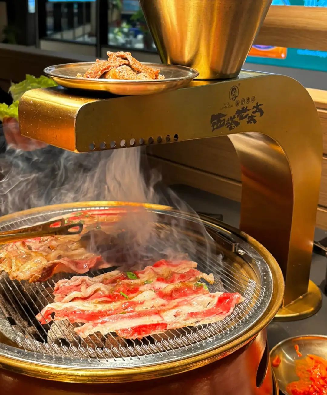 西塔老太太是一家朝鮮族烤肉連鎖品牌??救獾昕傁矚g和【煙火氣】掛鉤,解凍的生肉流著血水,滋啦滋啦的烤制冒著濃煙,你拿著鉗子一邊翻烤著腌好的肉,一邊把自己也腌入味兒,從頭到腳、從里到外全身吸滿了百分百油煙。