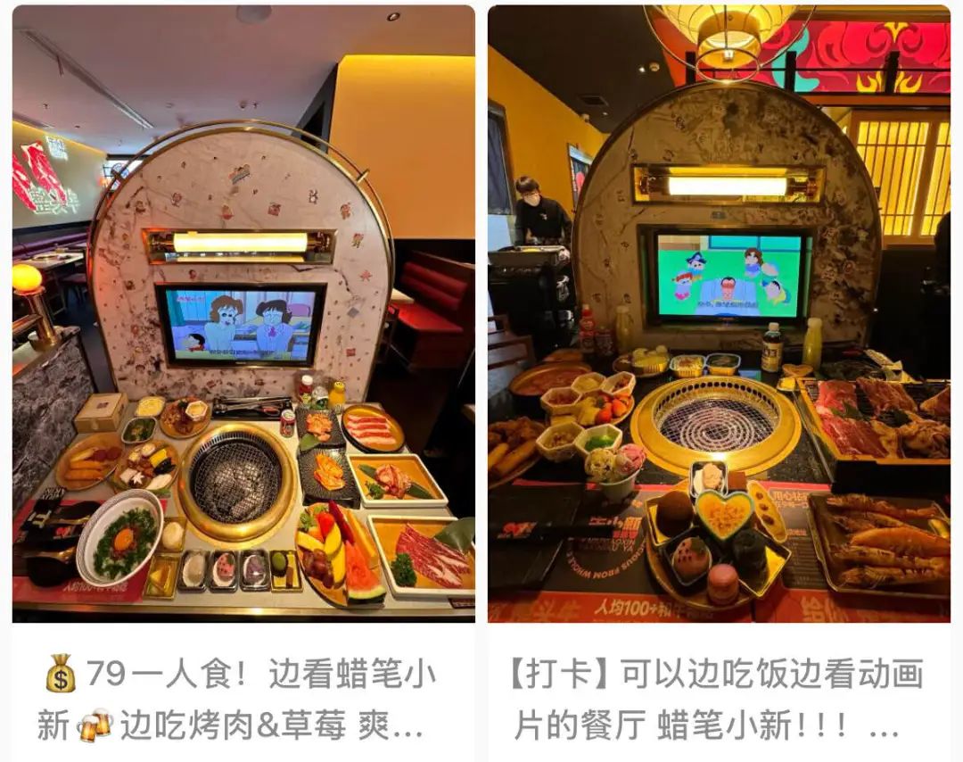 肉問屋把個別門店裝修成東京地鐵吸引打工人,還有日式烤肉店做成一人食,你可以一邊吃烤肉一邊看蠟筆小新。