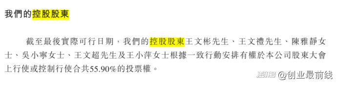 其中提及的控股股東則是王氏家族,包括王文彬夫妻、王文禮夫妻、王文超及王小萍。其中,王文彬、王文禮、王文超是三兄弟,王小萍則是他們的姐妹,這6位家族成員構(gòu)成一致行動人,共同控制八馬茶業(yè)55.90%投票權(quán)。