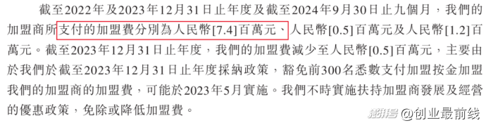 按照規(guī)定,加盟商須根據(jù)加盟協(xié)議支付一筆加盟費,加盟費通常不予退還。于2022年,公司獲得的加盟費就達到740萬元。此外,加盟商通常須支付定額加盟保證金,確保其遵守加盟協(xié)議條款。