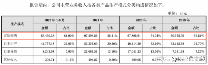 2019年至2022年9月,來自定制采購的產(chǎn)品占比主營收入的50%以上,而定制采購就是供應商代工完成的成品。與之相比,同行企業(yè)中國茶葉、瀾滄古茶都是以自主生產(chǎn)為主。