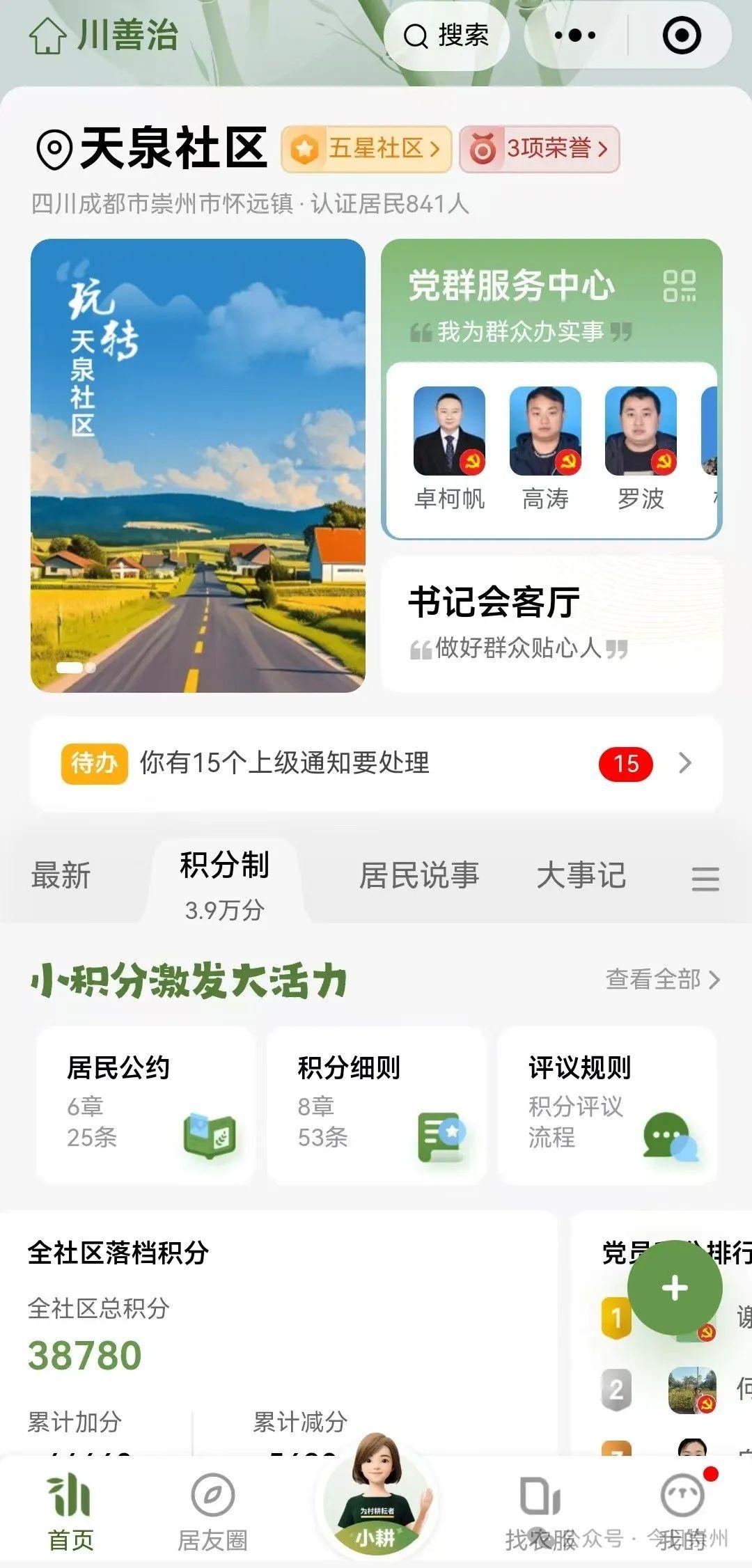 據(jù)介紹,線上,社區(qū)依托“川善治”治理平臺,為居民提供了一個便捷、高效的參與渠道。居民可以通過平臺了解社區(qū)環(huán)境整治的最新動態(tài),提出自己的意見和建議,甚至參與線上討論和決策過程。同時,平臺還引入積分制管理,居民參與線上活動和討論都能獲得相應(yīng)的積分獎勵。