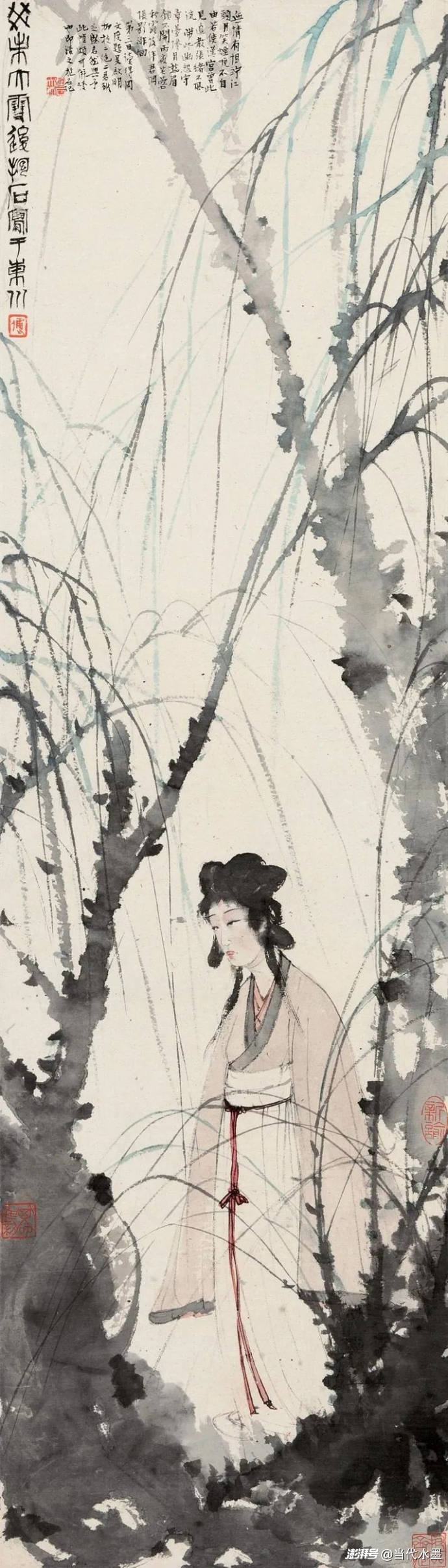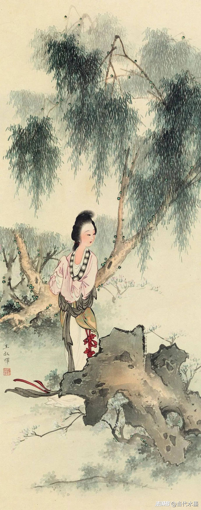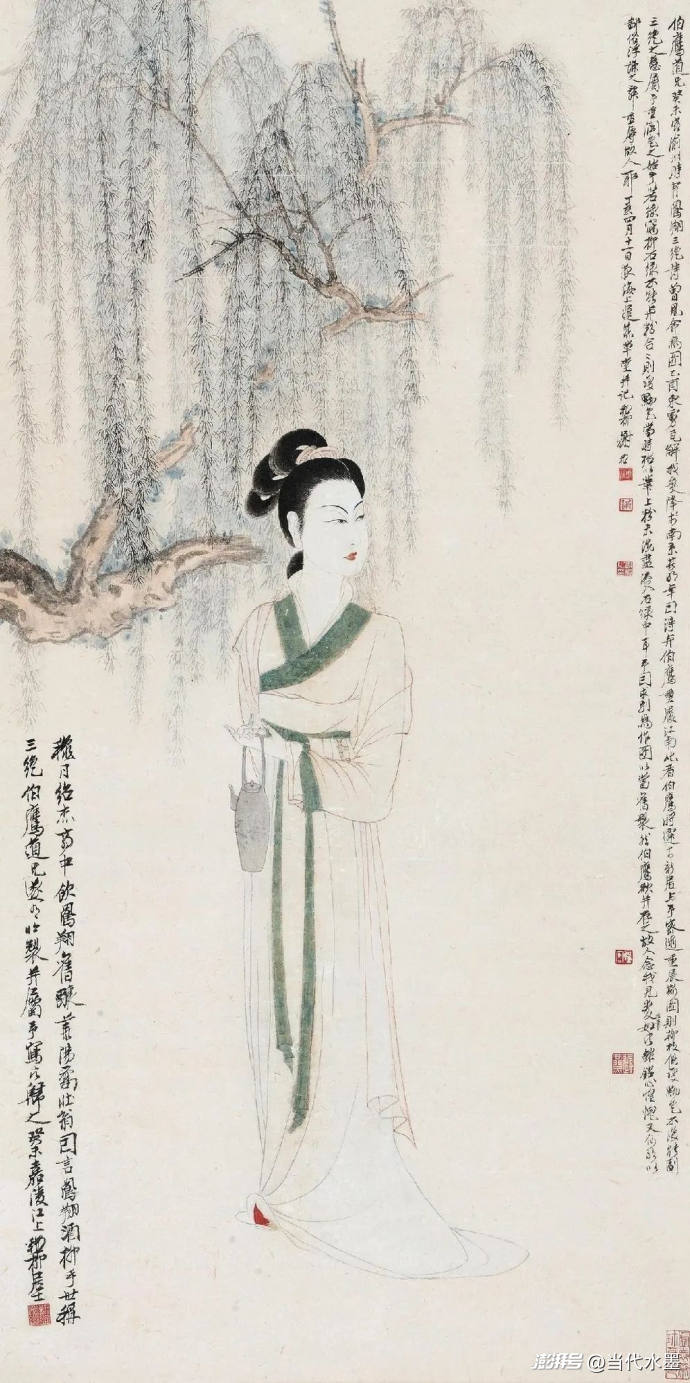 近現(xiàn)代名家極具詩意的柳蔭仕女題材作品