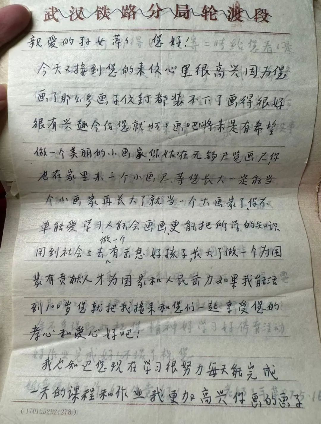 她會在開頭寫“親愛的孫女萍萍,您好”,在信的最后寫“吻吻小萍萍望她長大給我寫信”。