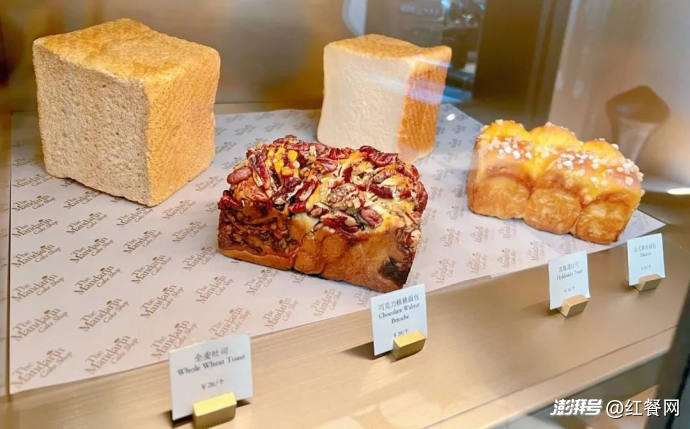 比如,UH祐禾一個(gè)吐司售價(jià)35元、Paper Stone Bakery招牌焦糖牛角28元,而在廣州文華酒店,吐司僅賣26元、牛角包售價(jià)26-28元;萬(wàn)豪酒店巧克力大吐司只要19元、北京的凱賓斯基的藍(lán)莓麥芬15元,有半斤重……