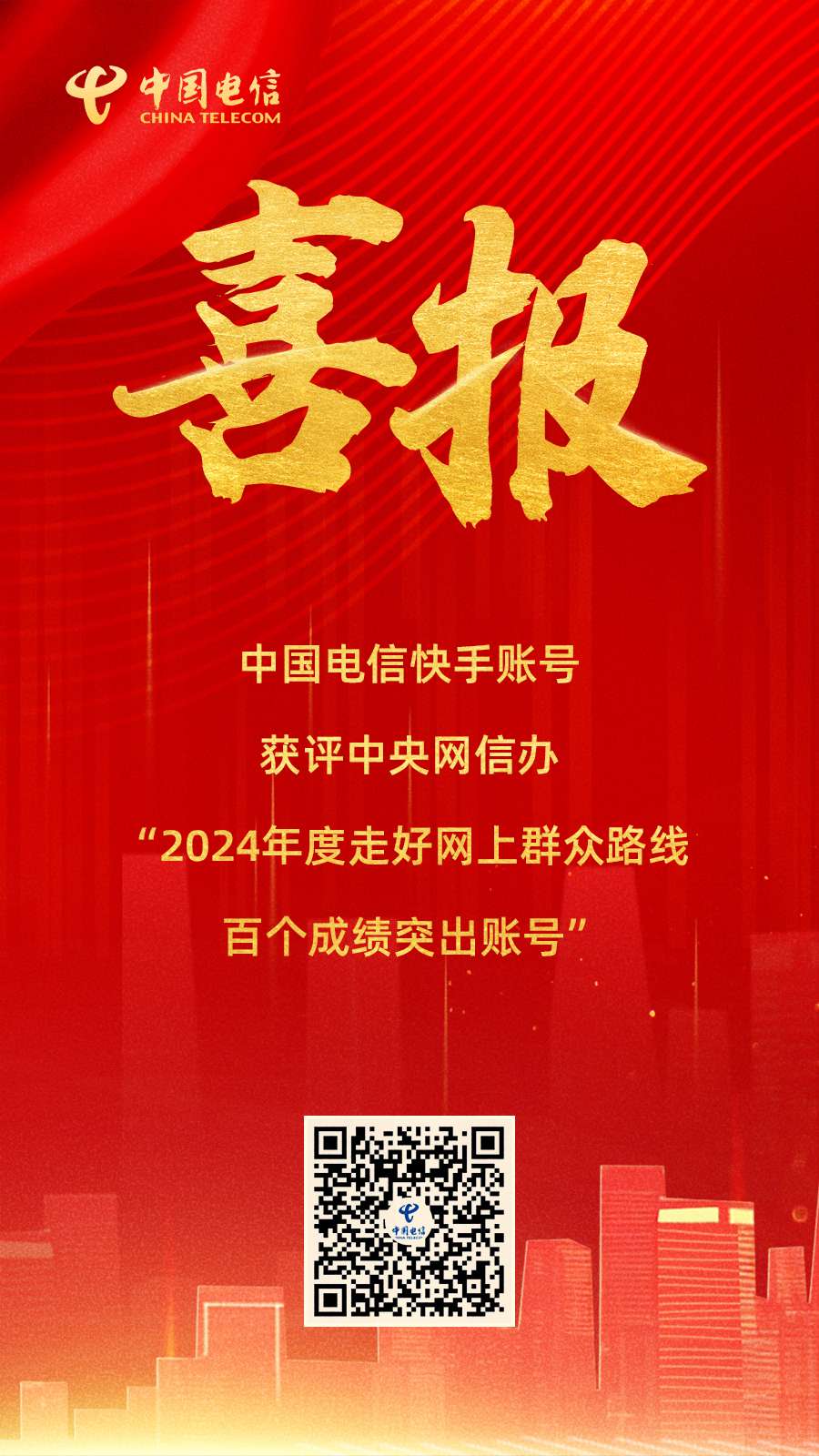 近日,中央網(wǎng)絡(luò)安全和信息化委員會(huì)辦公室發(fā)布“2024年度走好網(wǎng)上群眾路線百個(gè)成績(jī)突出賬號(hào)推選活動(dòng)”的結(jié)果。對(duì)100個(gè)在組織群眾、宣傳群眾、引導(dǎo)群眾、服務(wù)群眾中成績(jī)突出的標(biāo)桿賬號(hào)予以表揚(yáng)。中國(guó)電信集團(tuán)有限公司“中國(guó)電信快手號(hào)” 被通報(bào)表揚(yáng)。