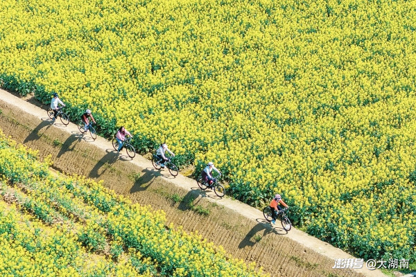 3月17日,湖南省婁底市雙峰縣鎖石鎮(zhèn),騎友在油菜花海間騎行。近年來,該鎮(zhèn)以花為媒,將傳統(tǒng)農業(yè)產業(yè)和農旅融合發(fā)展有機結合,做實產業(yè)項目,做活鄉(xiāng)村旅游,做好民生實事,書寫鄉(xiāng)村振興“花樣文章”。李建新 周俊剛 攝