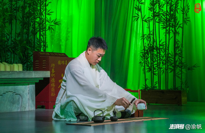 在臥佛殿觀看的《鑒真東渡禪茶秀》,讓歷史從典籍中鮮活地立了起來。光影流轉(zhuǎn)間,鑒真六次東渡的驚濤駭浪化作茶席上的水紋,身著褐衣的僧人將茶筅輕點,茶沫浮沉間竟似看見遣唐使船隊穿越風(fēng)浪。當(dāng)“山川異域,風(fēng)月同天”的偈語隨茶香漫開,忽覺禪意不必拘于蒲團之上——東渡的弘法壯舉與眼前的半盞清茶,原是同一種堅韌與從容。