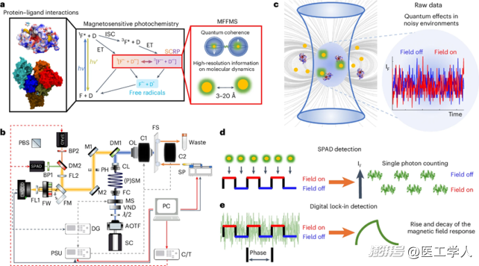 Luke P. Lee認為[1]:“Lewis Antill 和同事在 Nature Photonics 上撰文,開發(fā)了一種磁熒光波動顯微光譜(MFFMS)技術(shù),該技術(shù)允許在接近單分子水平上監(jiān)測蛋白質(zhì)-配體復(fù)合物中的量子相干效應(yīng),有望在生物系統(tǒng)中應(yīng)用?!?/p>