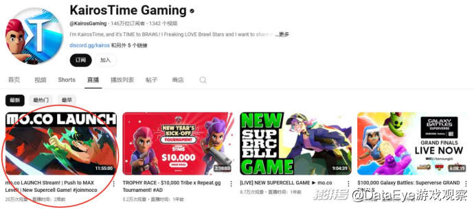 ②過度依賴創(chuàng)作者與平臺:大部分Supercell官方創(chuàng)作者的主要陣地都在Youtube,因此Youtube也是《MO.CO》早期獲量的主要平臺。游戲開服當(dāng)天,一位在Youtube上擁有146萬粉絲的頭部Supercell官方創(chuàng)作者,曾經(jīng)連續(xù)直播了近12個小時。