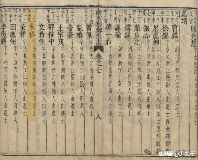 嘉靖癸丑年太學進士題名碑錄朱袗榜上有名
