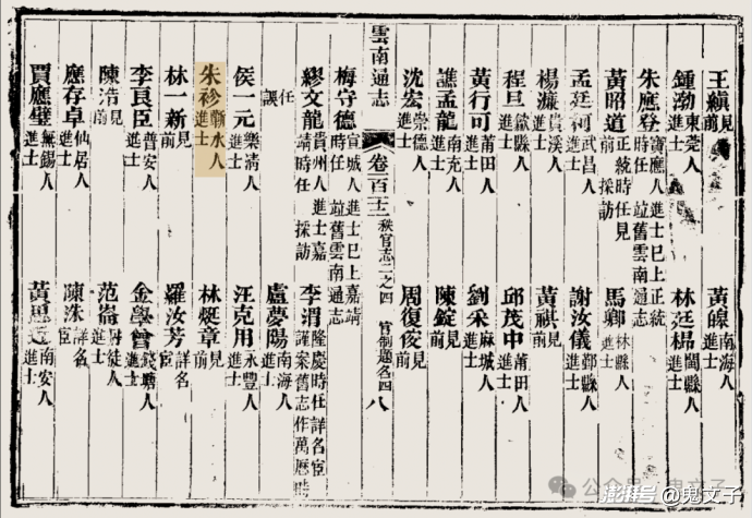道光年《云南通志》秩官志中關(guān)于朱袗的記載