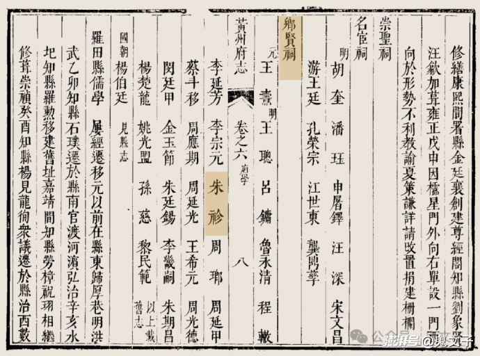 然而,我找了半天,幾本縣志中都沒有找到人們曾經(jīng)修建過一座方伯祠來祭祀朱袗。我又找來了乾隆年間的《黃州府志》,在卷六廟學中的入鄉(xiāng)賢祠的名單中找到了朱袗的名字,這說明當時確實民間有祭祀他,不過并沒有找到詳細的相關(guān)記載。