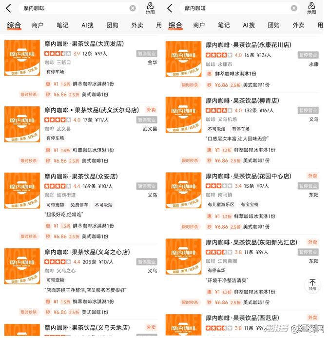 不過,紅餐品招查詢官方小程序發(fā)現(xiàn),摩內(nèi)咖啡聲稱的超百家門店,目前僅少量門店還能正常下單。