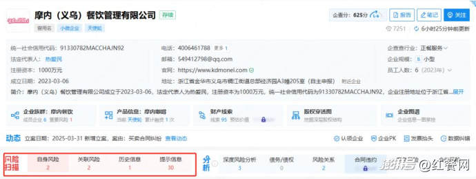 根據(jù)企查查信息,摩內(nèi)咖啡品牌的所有人為摩內(nèi)(義烏)餐飲管理有限公司,成立于2023年,不過從去年年底至今,這家公司發(fā)生了一系列重要變動(dòng),包括公司名稱、企業(yè)地址、主要人員等,而在3月18日,還新增了一條開庭公告,涉及到與上海普進(jìn)貿(mào)易有限公司的買賣合同糾紛。