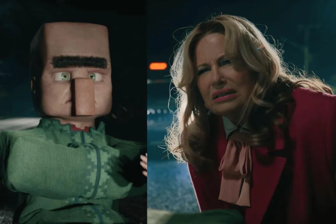 村民們作為游戲中常見的非玩家角色,在電影里的動作嚴格遵循游戲中的設(shè)定,無論是日常的行走姿勢,還是與主角們交流互動時的手勢和表情,和游戲中一樣木訥呆滯,大銀幕放大了這一點,使其成為了影片的笑點之一。