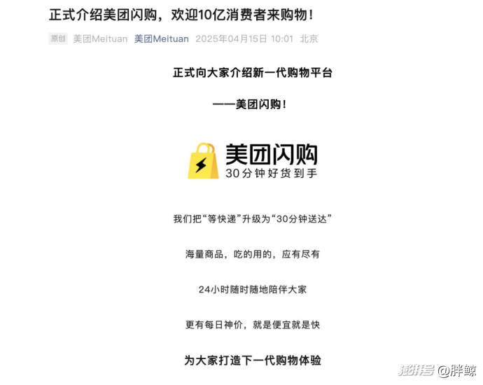 4 月 15 日一早,美團在其官方賬號正式宣布,旗下即時零售業(yè)務(wù)“美團閃購”成為獨立品牌,定位為“24小時陪伴消費者的新一代購物平臺”,將服務(wù) 10 億消費者“30 分鐘送萬物”。目前打開美團 App 就可以看到,“美團閃購”已經(jīng)與外賣、小象超市等核心業(yè)務(wù)一起出現(xiàn)在首頁,共享一級流量入口。