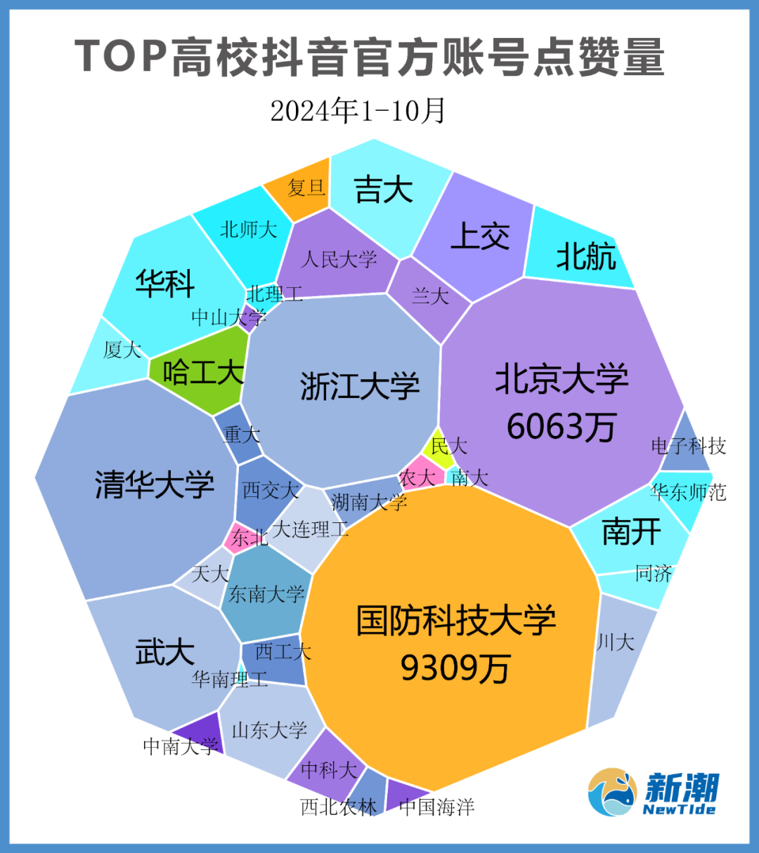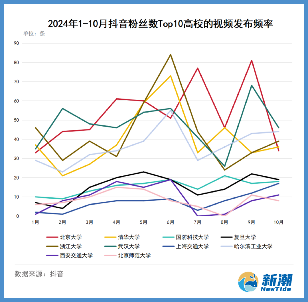 短視頻不僅是展示校園生活的窗口,也是塑造學(xué)校形象的高地。當(dāng)短視頻用戶規(guī)模突破10億,高校的新媒體競(jìng)爭(zhēng)早已超越傳統(tǒng)的招生宣傳,成為影響力塑造的重要一環(huán)。哪些高校能精準(zhǔn)把握流量密碼,成為短視頻領(lǐng)域的“頂流”?為解答這一問(wèn)題,新潮分析了全國(guó)39所985高校的官方賬號(hào)于2024年1月至10月在抖音平臺(tái)發(fā)布的6773條視頻,試圖揭示高校短視頻的運(yùn)營(yíng)現(xiàn)狀與競(jìng)爭(zhēng)格局。