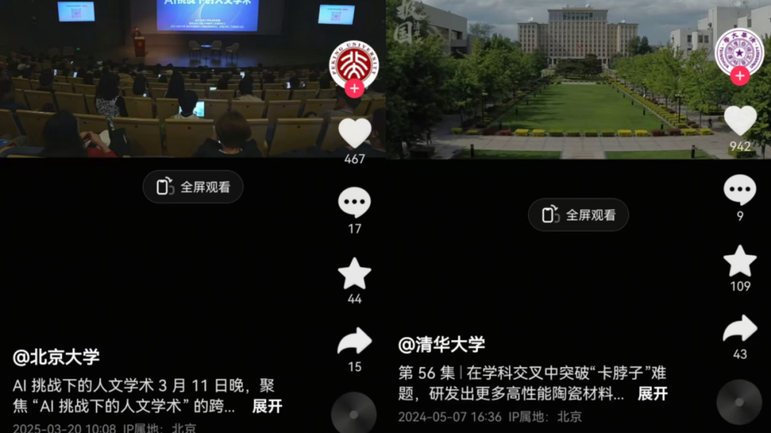 由此可見(jiàn),短視頻的成功不僅取決于信息量,更依賴于情感共鳴和話題熱度。抖音用戶更傾向于觀看與自己生活相關(guān)、易于理解并富有故事性的內(nèi)容。這意味著,985高校要想在短視頻賽道殺出一條血路,在內(nèi)容創(chuàng)作時(shí)就需要在嚴(yán)肅與趣味之間找到平衡點(diǎn)。