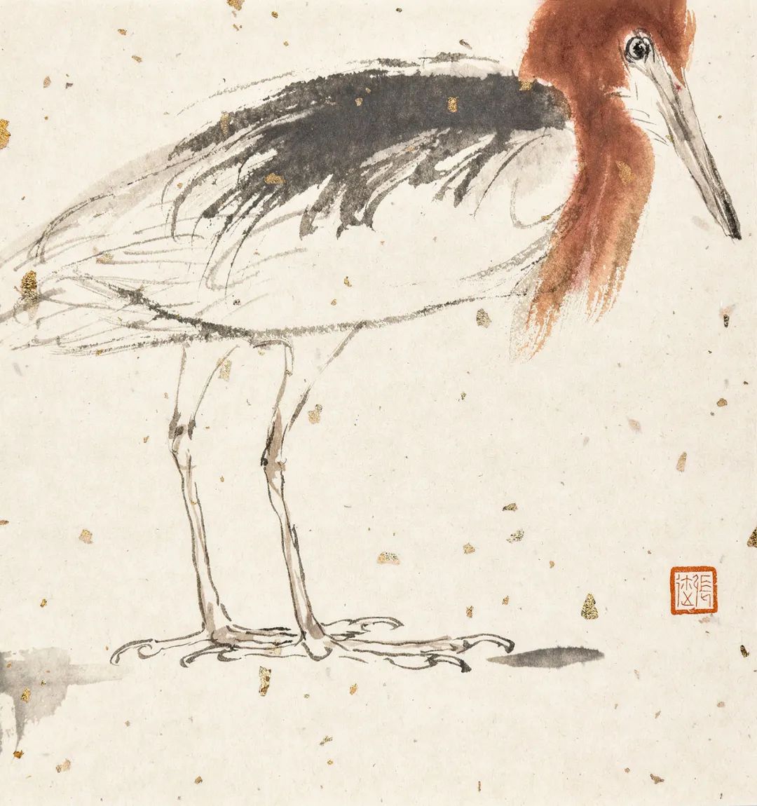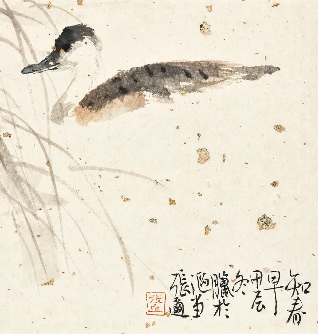 張邇《甲辰除歲戲?yàn)椤で蔌B(niǎo)》灑金宣冊(cè)頁(yè)-紙本設(shè)色-20x21cm