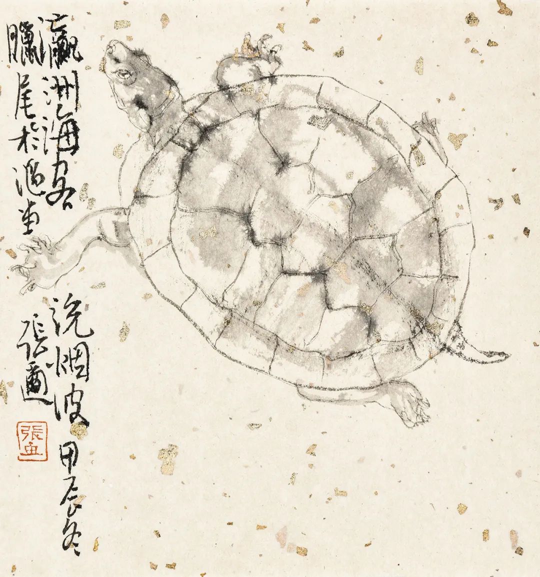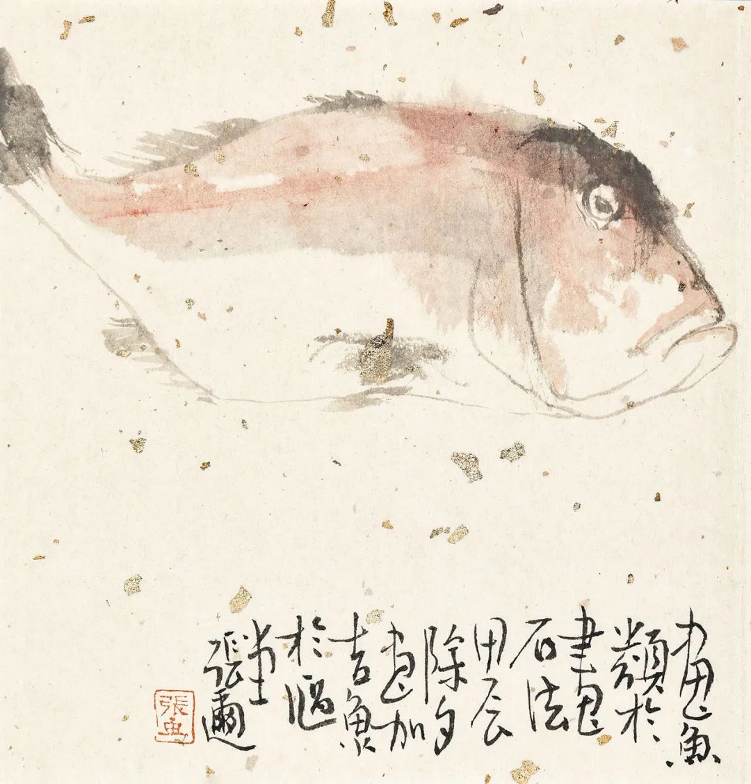張邇《甲辰除歲戲?yàn)椤~(yú)》灑金宣冊(cè)頁(yè)-紙本設(shè)色-20x21cm