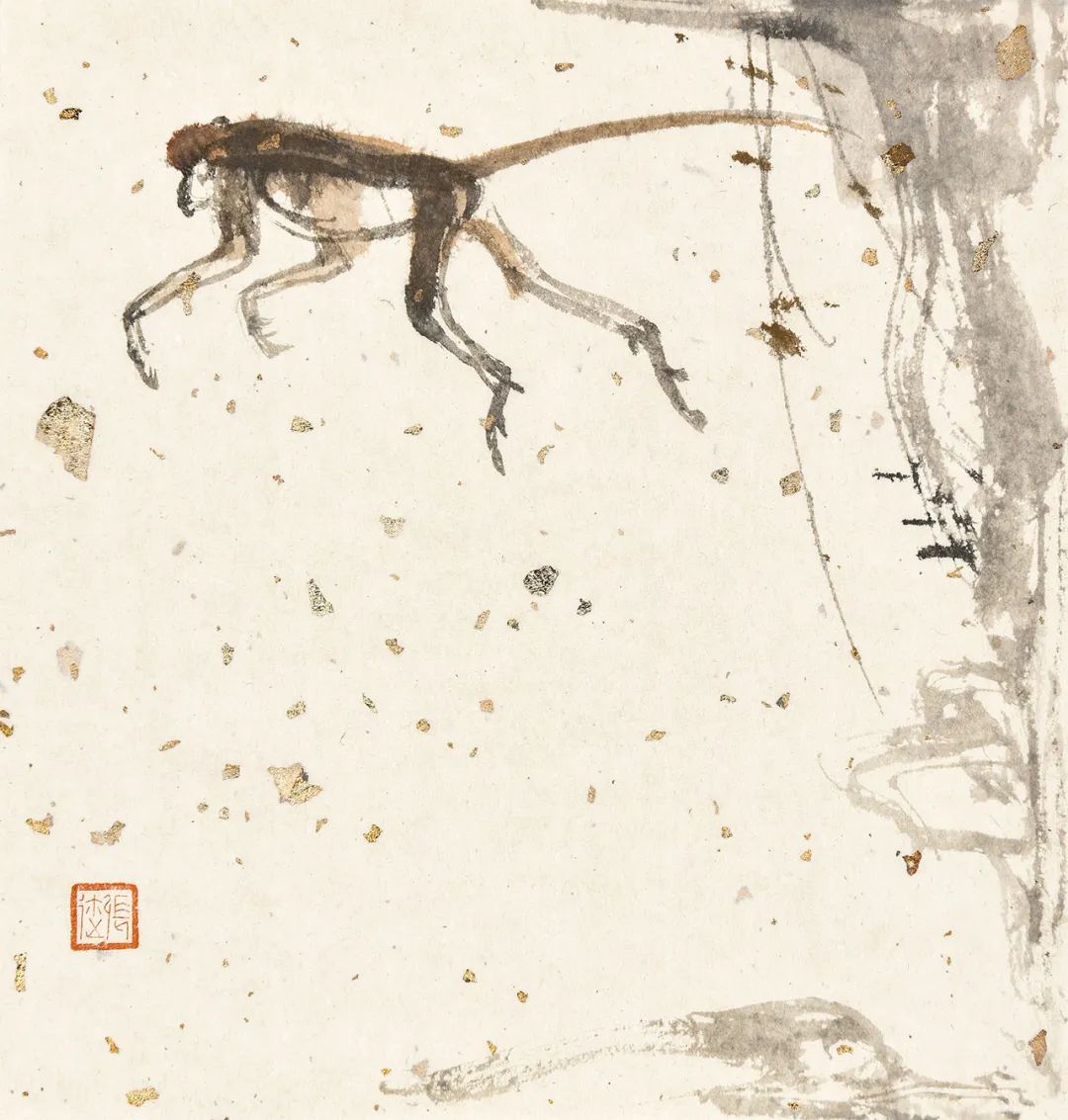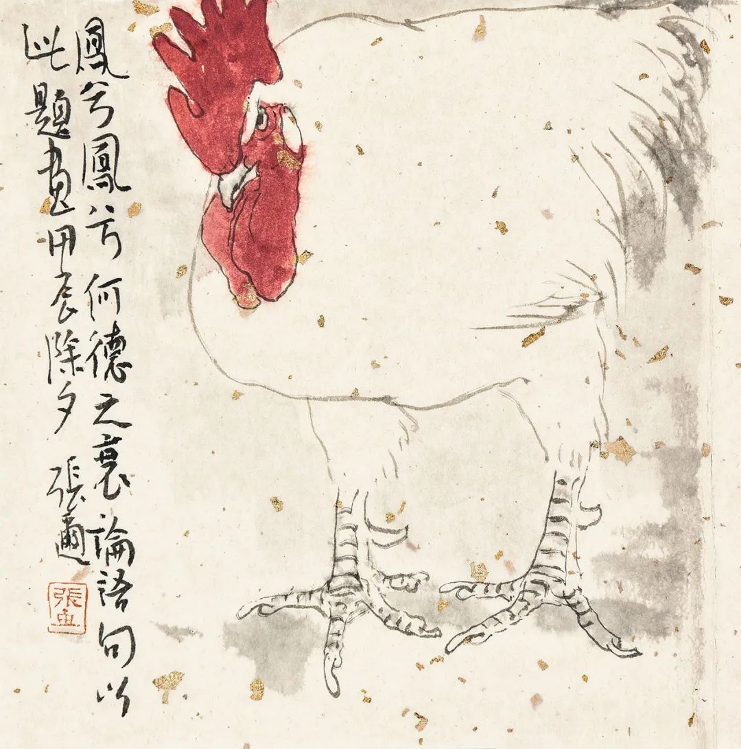 張邇《甲辰除歲戲?yàn)椤P兮鳳兮》灑金宣冊(cè)頁(yè)-紙本設(shè)色-20x21cm