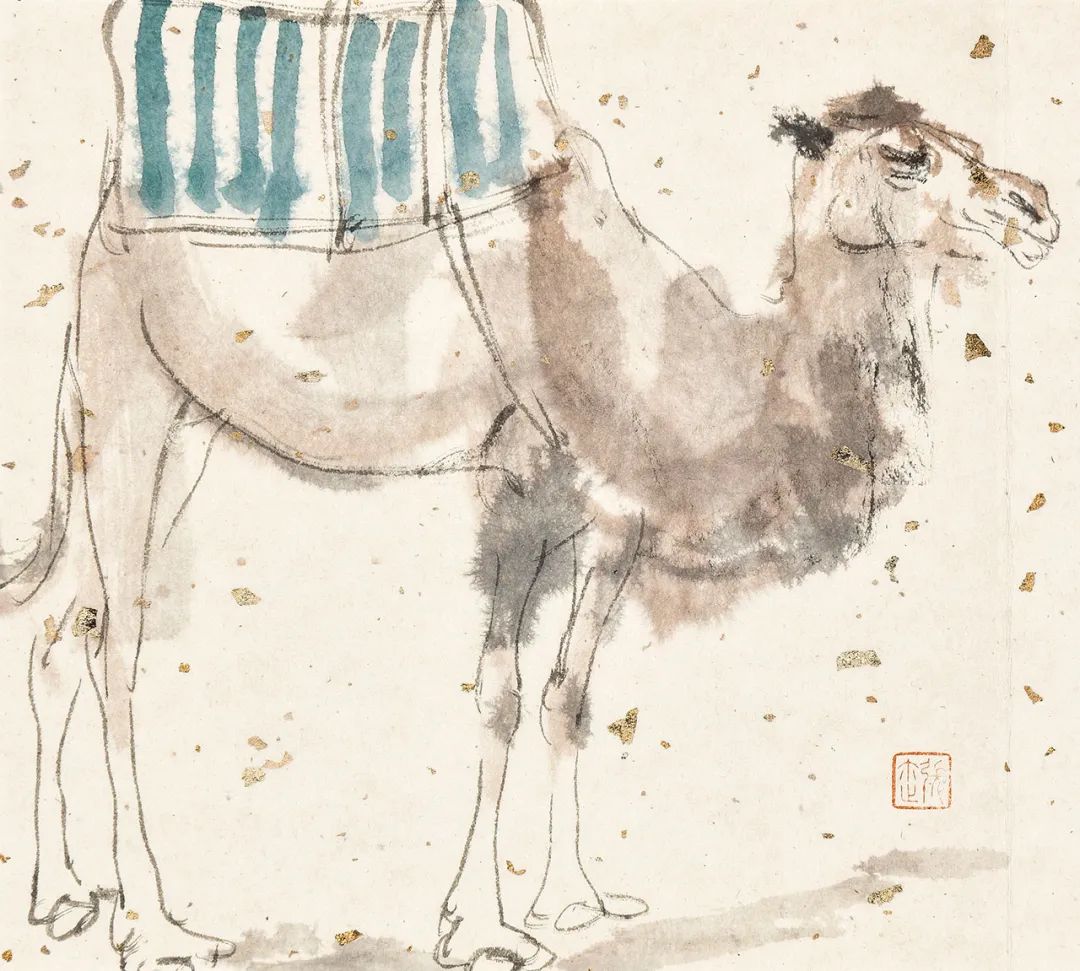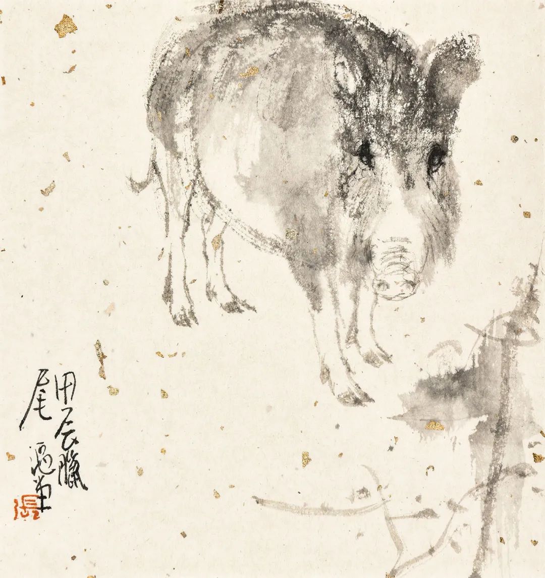 張邇《甲辰除歲戲?yàn)椤んH》灑金宣冊(cè)頁(yè)-紙本設(shè)色-20x21cm