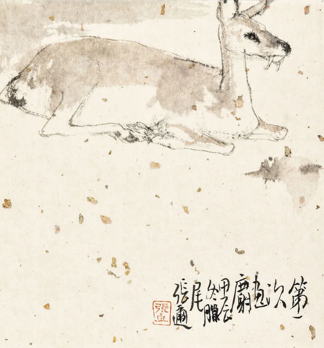 張邇《甲辰除歲戲?yàn)椤ぼS》灑金宣冊(cè)頁(yè)-紙本設(shè)色-20x21cm