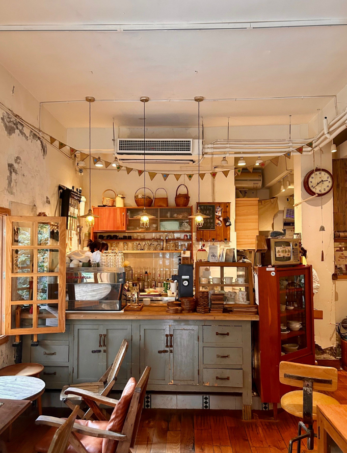 i 人友好的社區(qū)咖啡館。老板將母親的名字刻在木質(zhì)招牌上,店內(nèi)陳列著書法作品與老式家具。點(diǎn)一杯手沖咖啡,搭配一塊桂花米釀蛋糕,聽老板講述山城老故事,時(shí)光在這里變得溫柔而綿長。