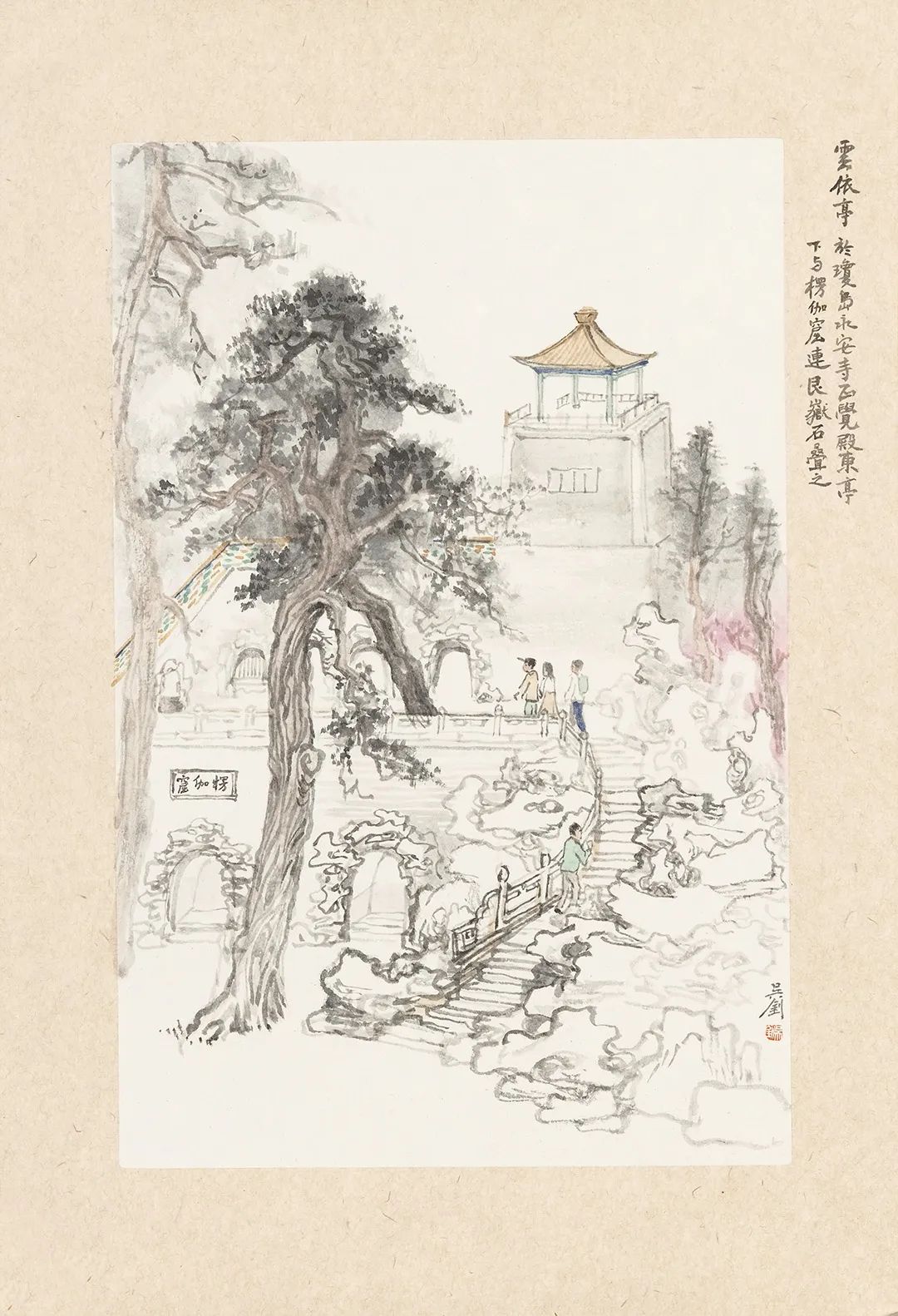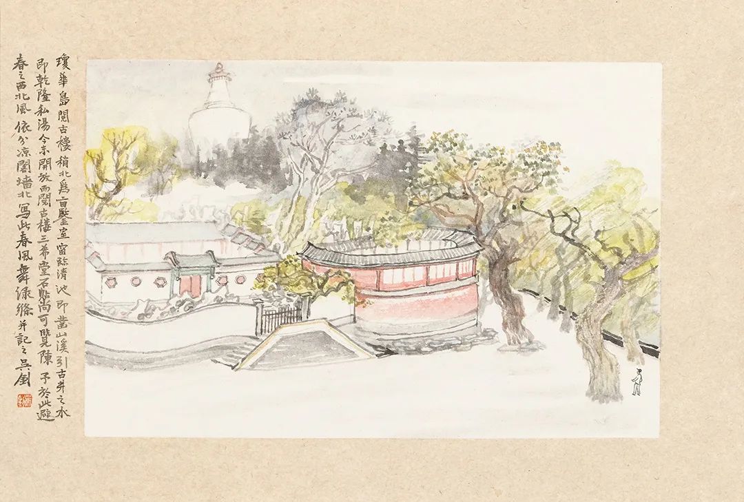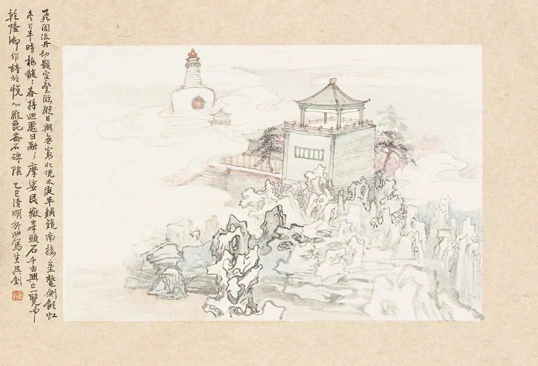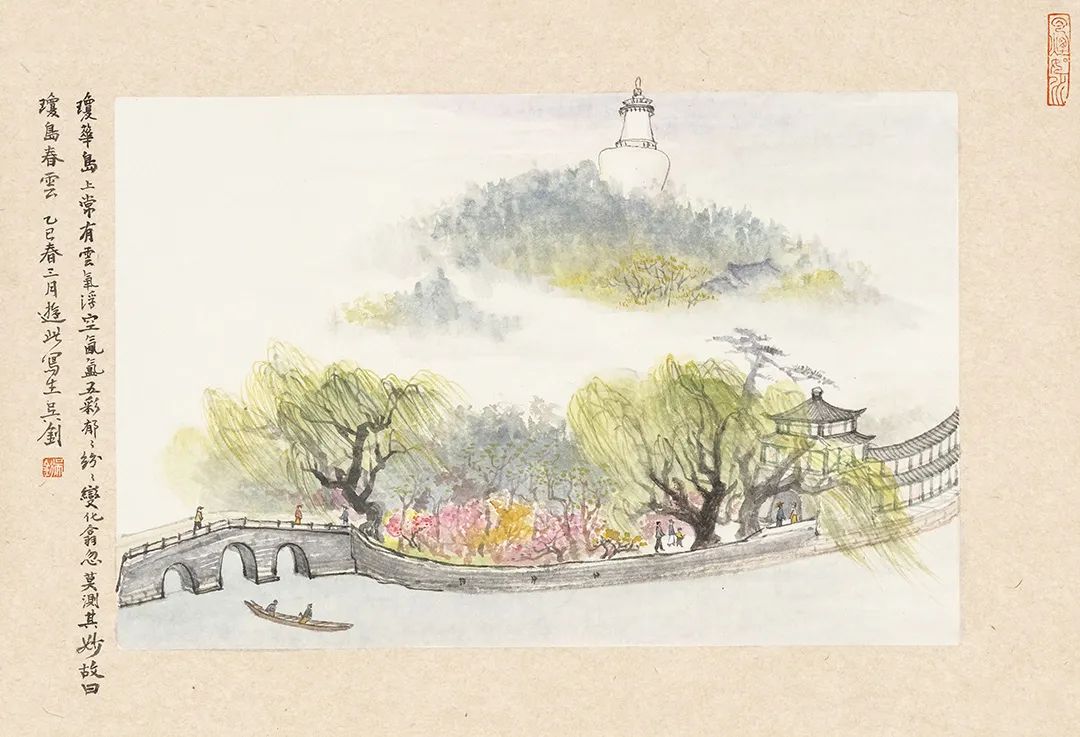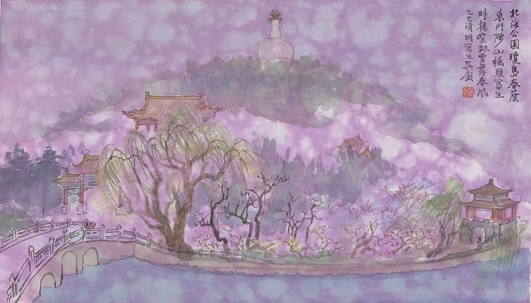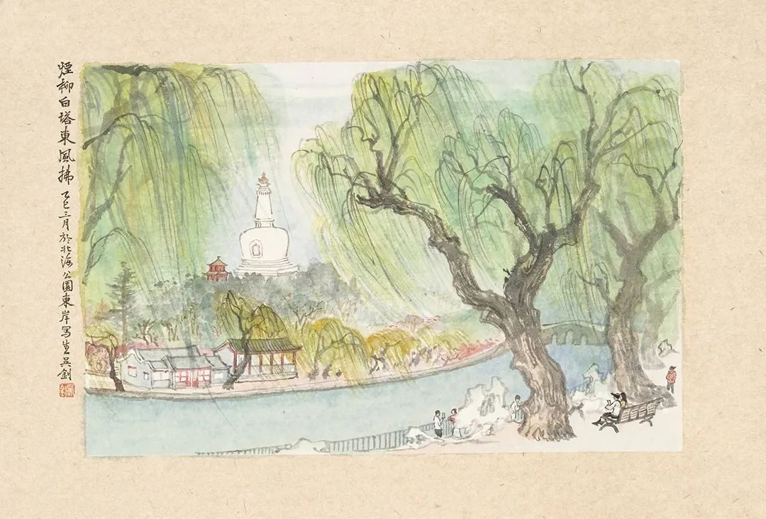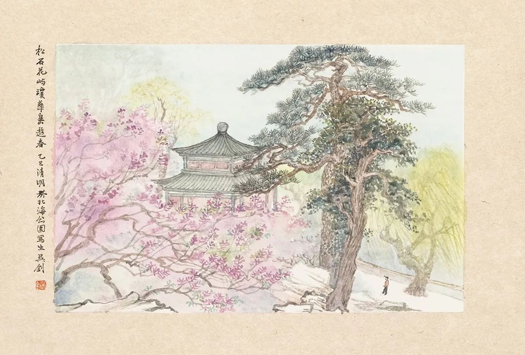 北海公園作為城市的園林一直在,社會飛速發(fā)展消彌的附近即成遠(yuǎn)方,永恒的是林泉疊夢,消弭的是過眼云煙,畫筆里北海公園春天的情境趣味,留圖于人同看,同景不同境,因時而異。