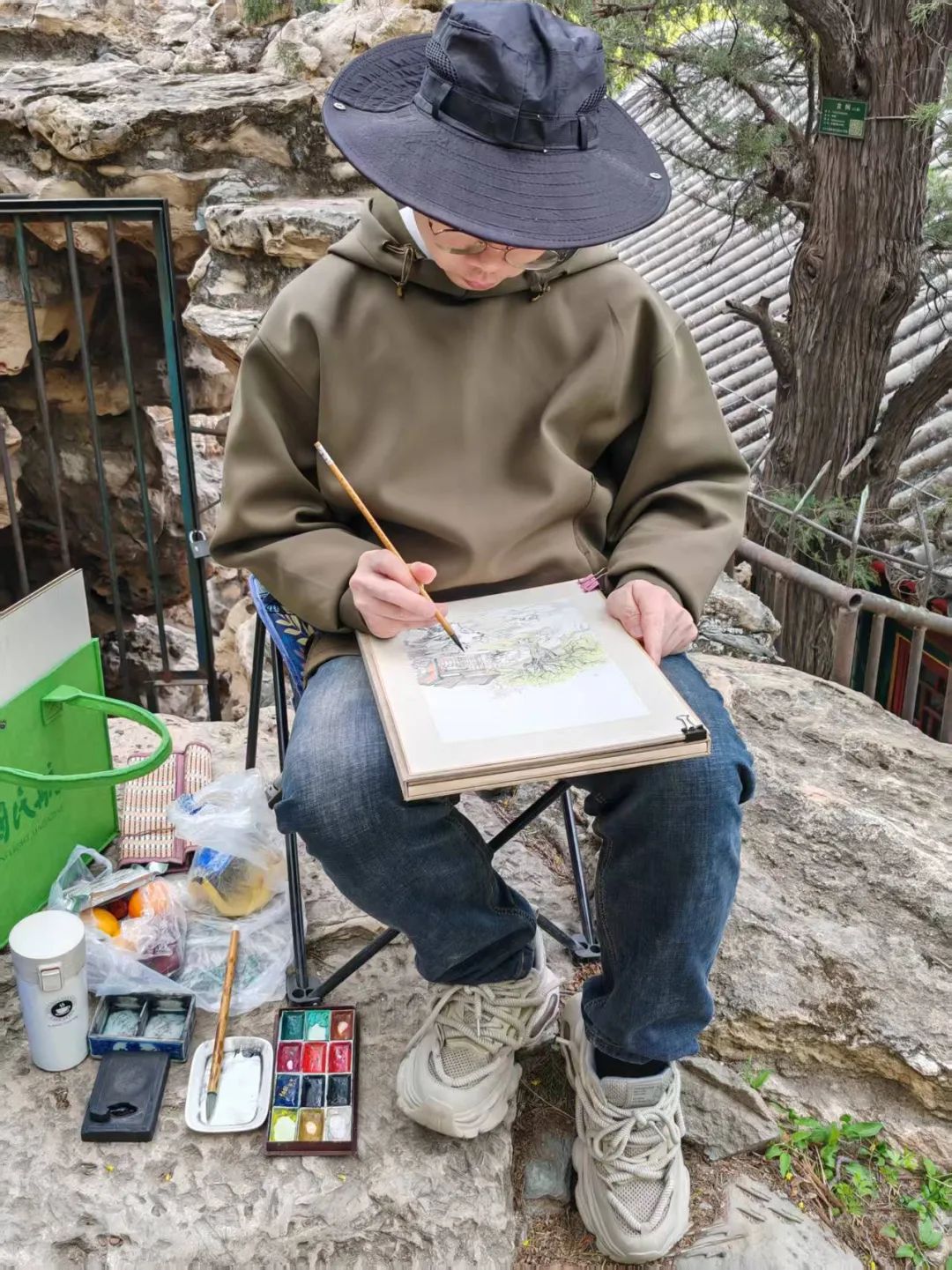 寫生記錄大自然的人和生活,好好的感受時光從筆尖流淌成畫,好享受這種心流時間,這是畫畫最愉快的地方。百年苑囿,古木參天,掩隱古跡,古建筑群中,生活環(huán)境的林泉之想,古往今來,情境舊夢疊新夢。