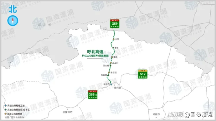 G59呼北高速爐紅山至慈利段項(xiàng)目起自湘鄂交界爐紅山,接在建的呼北高速湖北段;止于慈利縣西張家山,接已建的呼北高速慈利至張家界段。全線共設(shè)置太平、維新、龍王洞、東岳觀、慈利西(樞紐)5處互通,全長(zhǎng)78.9km,采用雙向四車道,設(shè)計(jì)速度100km/h,總投資144.2億元。