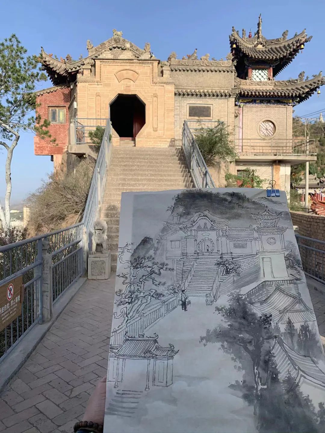 大像山北襟渭水,南枕朱圉,成紀(jì)雄封過的漢陽舊郡,憑吊多閑情,適合寫生,名勝古跡讓畫多一層隔世韻味。