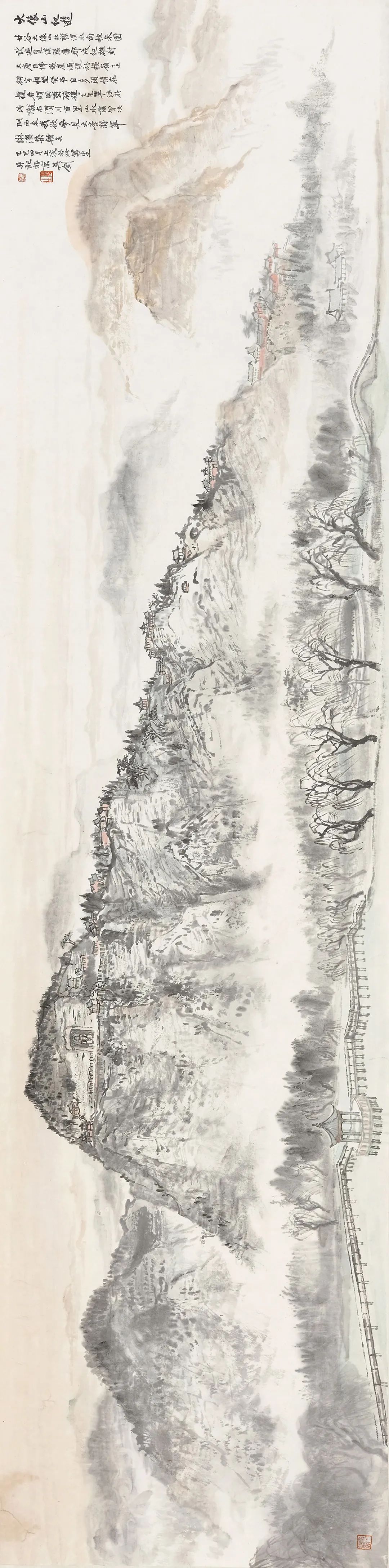 甘谷大像山攬勝-紙本設(shè)色-34x138cm-2025