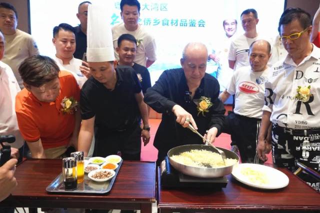 獲得世界華人之光獎、中國飯店協(xié)會終身貢獻獎、香港特別行政區(qū)大師級廚王等多項榮譽的“廚神”戴龍先生在活動上,分享了對開平馬岡鵝的獨到見解,并現(xiàn)場演繹創(chuàng)意菜品“僑鄉(xiāng)馬岡鵝炒飯”。他以臺山絲苗米搭配開平特色馬岡鵝肝醬、鵝肉粒、鵝蛋,再融入陳皮碎提香,將僑鄉(xiāng)食材的醇厚與粵菜“本味”理念巧妙結(jié)合,展現(xiàn)了傳統(tǒng)食材的創(chuàng)意新生。