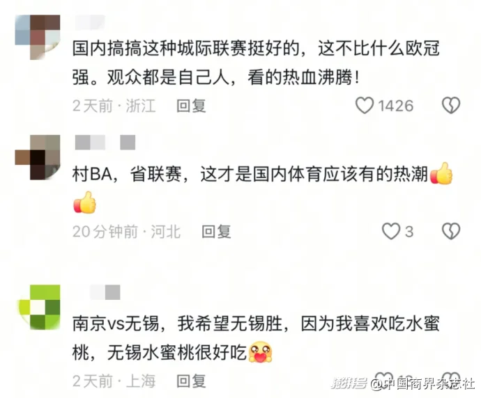 “蘇超”的成功,不得不提的是其“享受比賽”的純粹性——參賽者既有職業(yè)球員,也有大學(xué)生、上班族,體現(xiàn)了足球的草根精神。此外,從“楚漢德比”到“小龍蝦德比”,再到“美猴王大戰(zhàn)霸王龍”……網(wǎng)友持續(xù)造詞、斗圖,讓賽事熱度不斷攀升。這種競爭沒有造成割裂,反而強(qiáng)化了城市間的深度聯(lián)結(jié),將市民們對(duì)地域文化的喜愛與認(rèn)同外化成每一聲吶喊、每一次跨城的流動(dòng)。