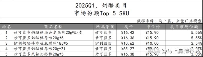 作為奶酪類目的頭號玩家,在市場份額TOP 5 SKU中,妙可藍(lán)多集團(tuán)共有四款產(chǎn)品上榜,產(chǎn)品口味也十分豐富,展現(xiàn)出其在奶酪市場的強(qiáng)勢競爭力。而伊利股份集團(tuán)也表現(xiàn)不俗,憑借“奧運(yùn)版原味”產(chǎn)品躋身第三。