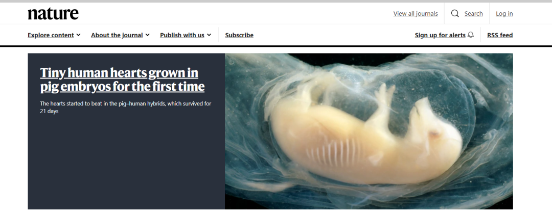 Nature首頁報(bào)道了一項(xiàng)最新研究成果。來自中國的研究團(tuán)隊(duì),首次在豬胚胎中成功培育出微型人類心臟。這項(xiàng)突破性研究采用人-動(dòng)物嵌合體技術(shù),通過在動(dòng)物胚胎中培育人類細(xì)胞,最終在動(dòng)物體內(nèi)發(fā)育為可供人體移植的功能器官。