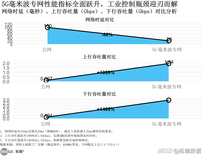 通過實測數(shù)據(jù)驗證,5G毫米波專網(wǎng)將網(wǎng)絡(luò)時延壓縮至20ms(99.99%可靠性),上行吞吐量峰值達1.94Gbps,較公網(wǎng)實現(xiàn)1899%的性能躍升。這些技術(shù)突破不僅解決了AMR碰撞停機等行業(yè)痛點,更為人形機器人等新興應(yīng)用開辟了技術(shù)路徑。通過對英特爾成都工廠的深度案例分析,本報告揭示了毫米波專網(wǎng)在工業(yè)場景的部署邏輯和經(jīng)濟效益,為制造業(yè)數(shù)字化轉(zhuǎn)型提供了可復(fù)用的實施框架。
