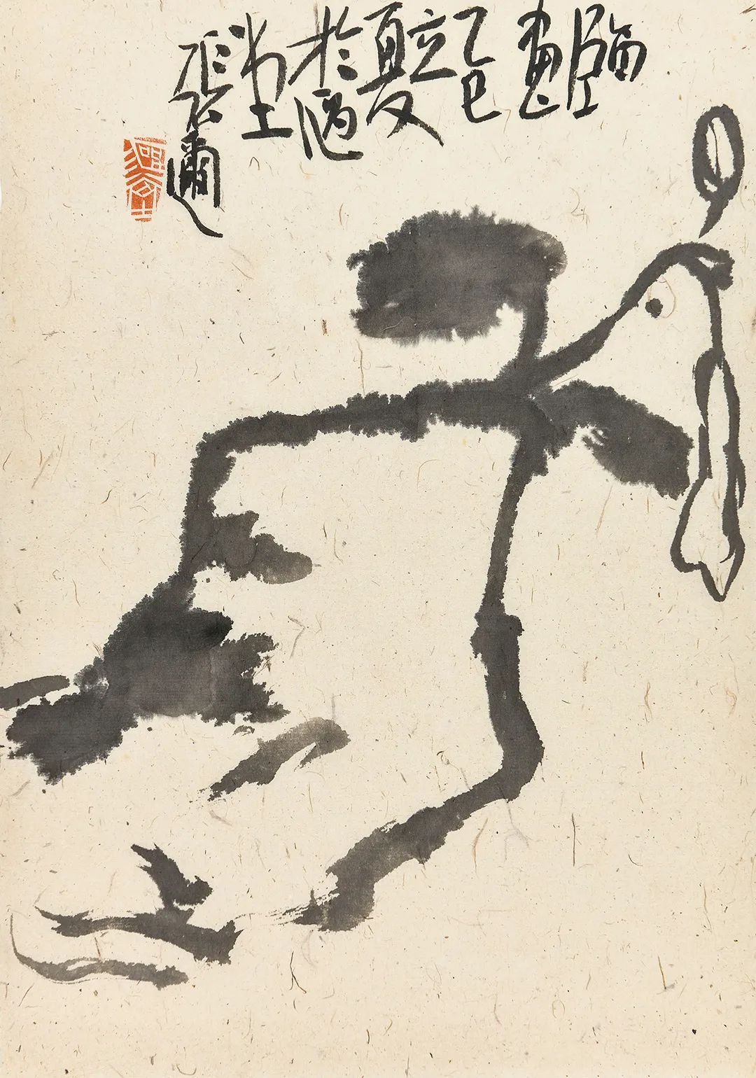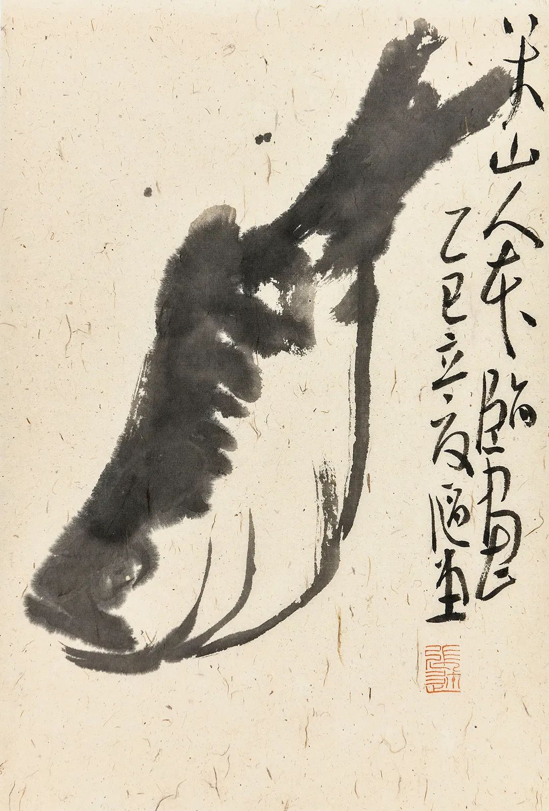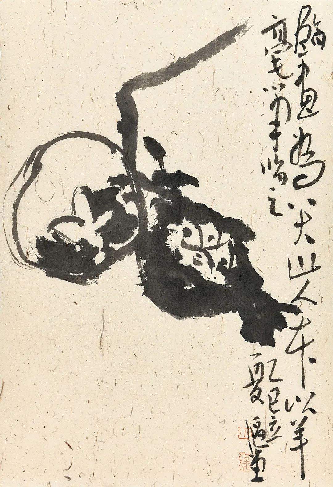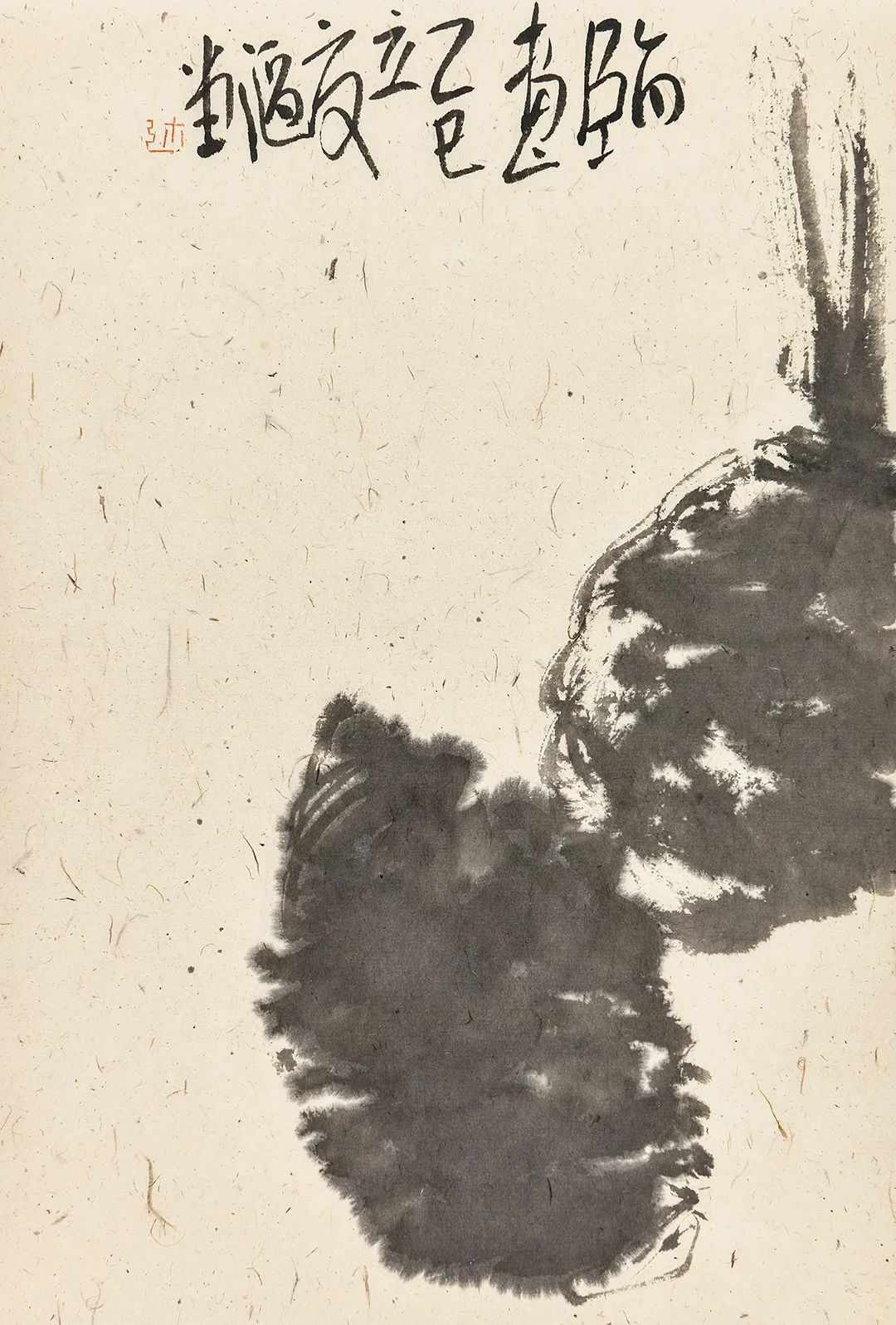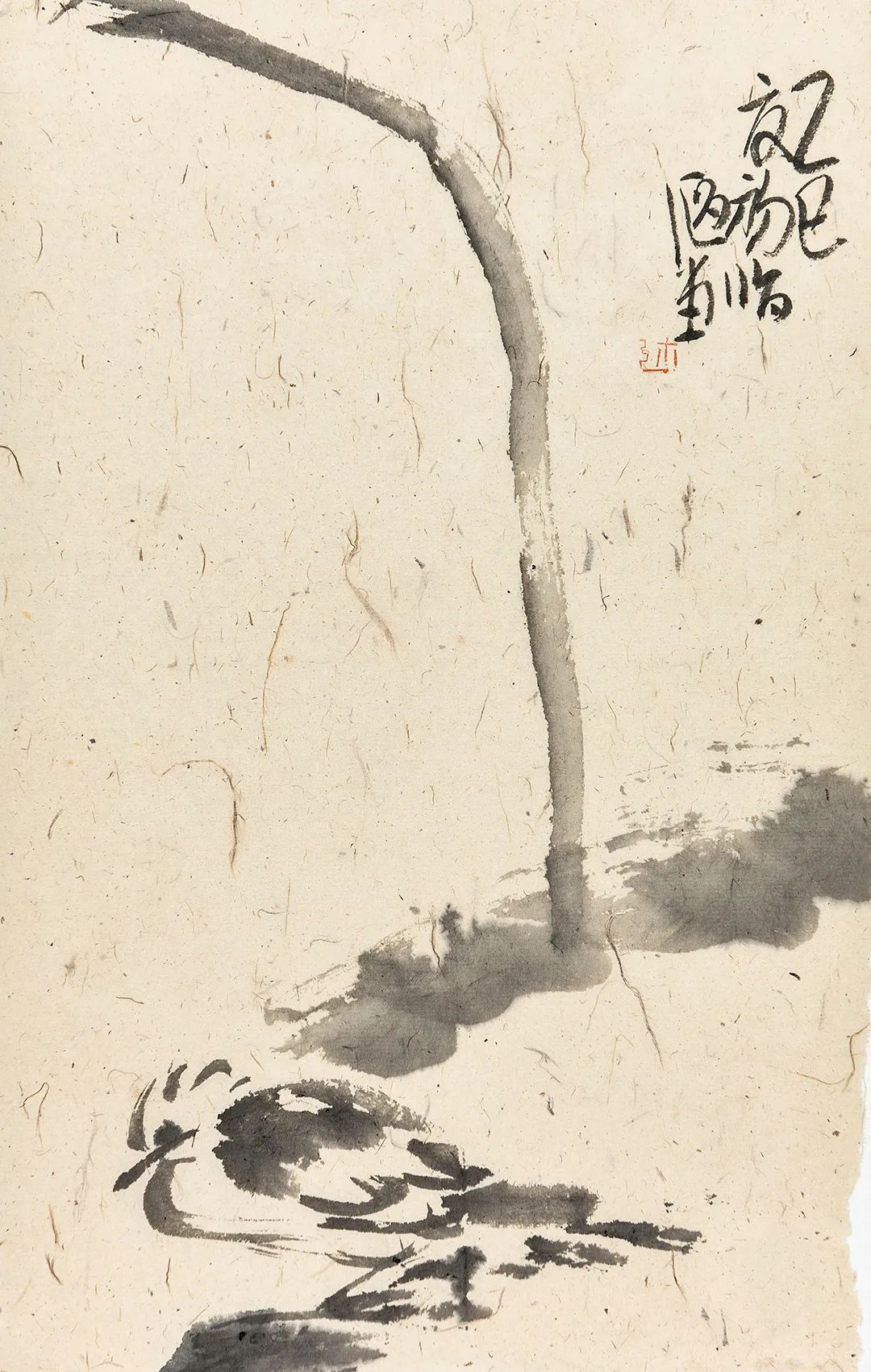 八大山人好畫一幅,筆法很妙,妙在用筆無一處正經(jīng),又無處不正經(jīng),畫面整體又淳樸無邪氣。黃賓虹說畫畫要筆筆中鋒,這幅可謂典范。真正會用中鋒的是表面上不見得是中鋒,但散側(cè)逆順都貫穿著中鋒的精神,像孫悟空的七十二變才對,八大山人是用中鋒的高手。想起《論語》一句,君子貞而不諒,意思是君子做事精神不移,形式不拘。貞而不諒,這句作為中鋒用筆的要訣也可。