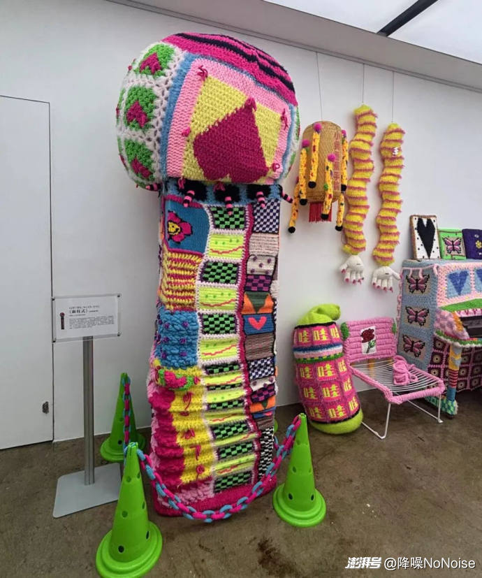 比如堪稱「小黃香蕉」代表作的女性主題藝術(shù)裝置《新柱式》,那根五彩毛線拼織的柱子既可以撐到6米多,也可以被壓縮到3米多,象征著媽媽在家庭里的角色——一個非常柔軟的支撐力。別管天大的事,還是微不足道的小事,媽媽總是默默支持孩子。