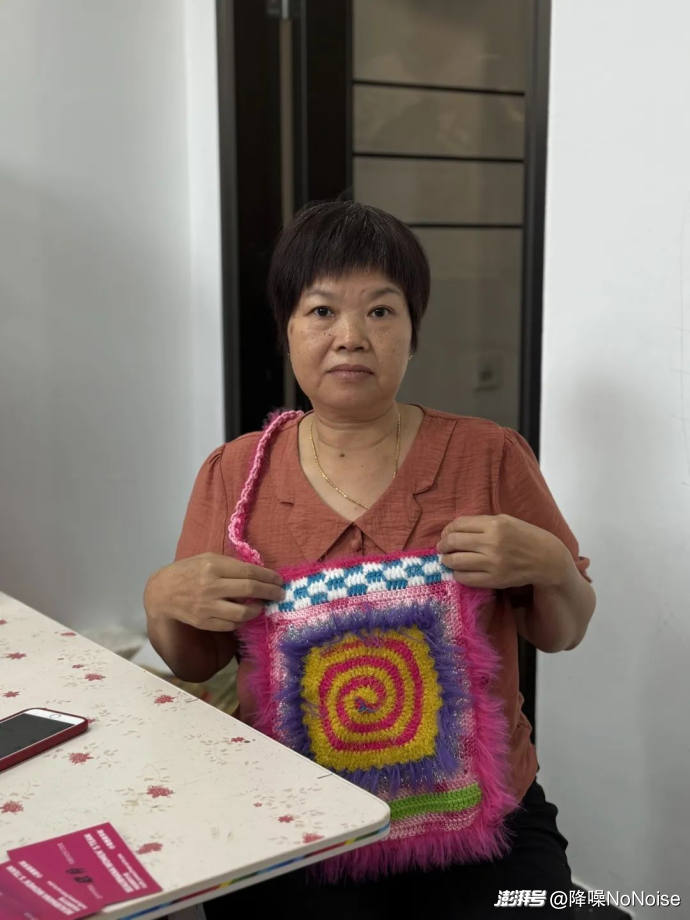 每個能簽名的女性,都要有獨立的作品。燕珍原先只負(fù)責(zé)串珠、手繡、包裝等配合性工作,不通手鉤。但她好強(qiáng),羨慕別的手鉤阿姨。