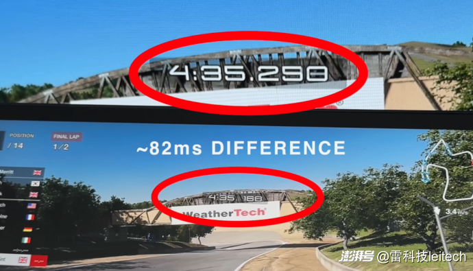 接下來,切換到PS5上,基于《GT賽車7》里計時賽的UI顯示,可以看到PeakDo的串流延遲是60ms左右。
